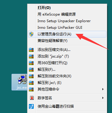 如果您是WINDOWS 7/8/10 這些比較新的操作系統(tǒng),那么需要先鼠標(biāo)左鍵點(diǎn)擊一下安裝程序,然后再點(diǎn)鼠標(biāo)右鍵,然后在彈出菜單中點(diǎn)擊[以管理員身份運(yùn)行],就可以進(jìn)行安裝了。