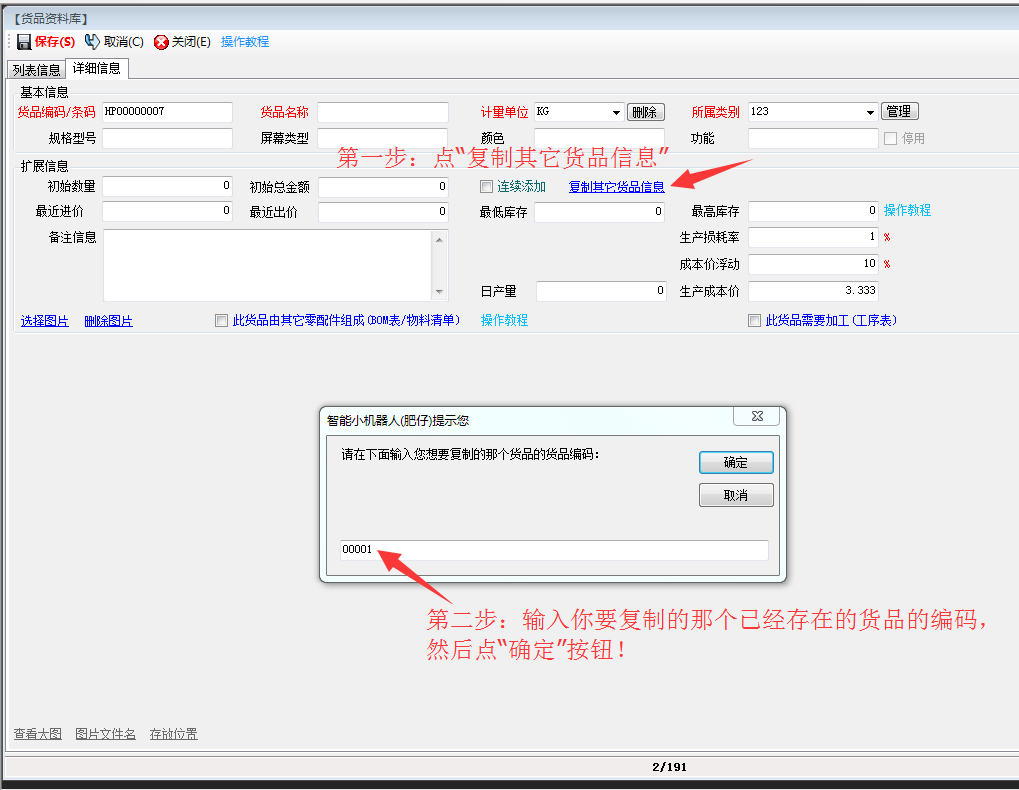 《貨品管理里面增加貨品時,復(fù)制其它貨品的信息》