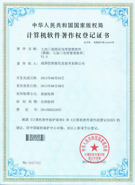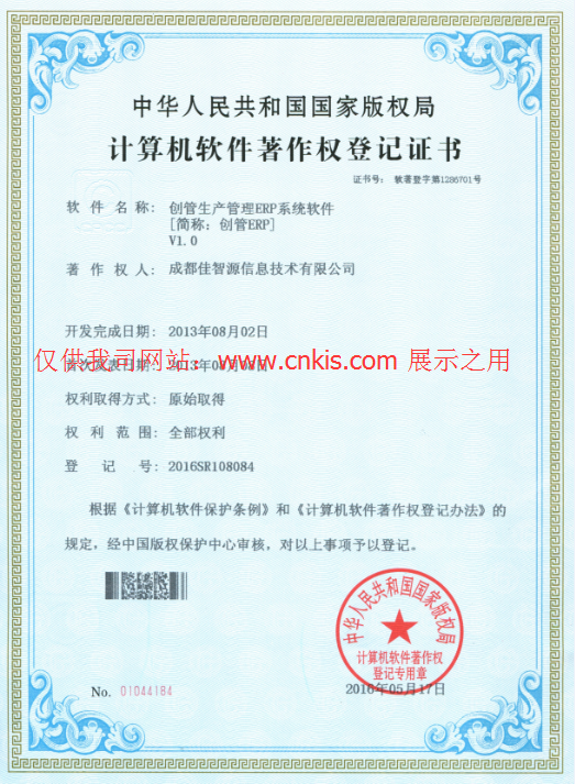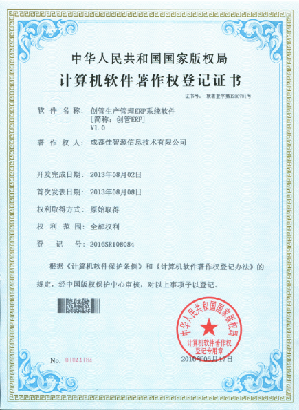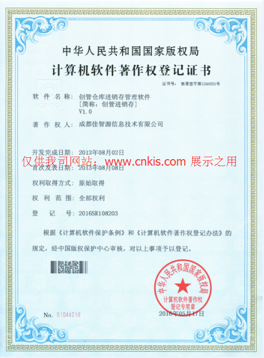 軟件著作權(quán)登記證書(有軟件著作權(quán)登記證書,表示為此軟件的開發(fā)商,擁有源代碼及全部知識(shí)產(chǎn)權(quán)