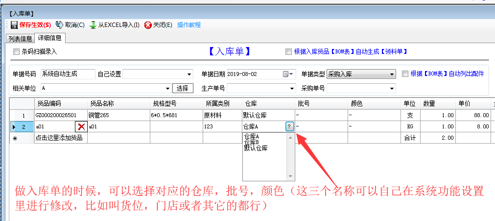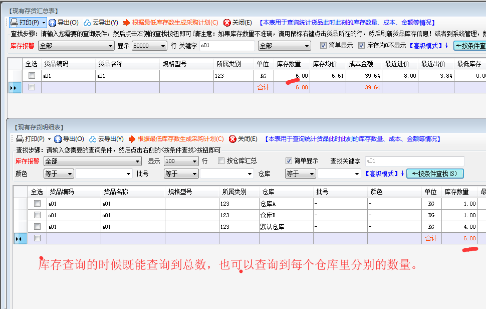 當(dāng)我們開通這個(gè)批號(hào)功能之后,在入庫(kù)單,出庫(kù)單,還有統(tǒng)計(jì)報(bào)表里面的庫(kù)存查詢界面,就能把你設(shè)置的這些信息顯示出來了。 入庫(kù)和出庫(kù)的時(shí)候必須選擇倉(cāng)庫(kù)號(hào)或批次號(hào),然后在統(tǒng)計(jì)庫(kù)存的時(shí)候,即能知道總數(shù)量,也可以知道不同倉(cāng)庫(kù),不同批次的分別有多少了。