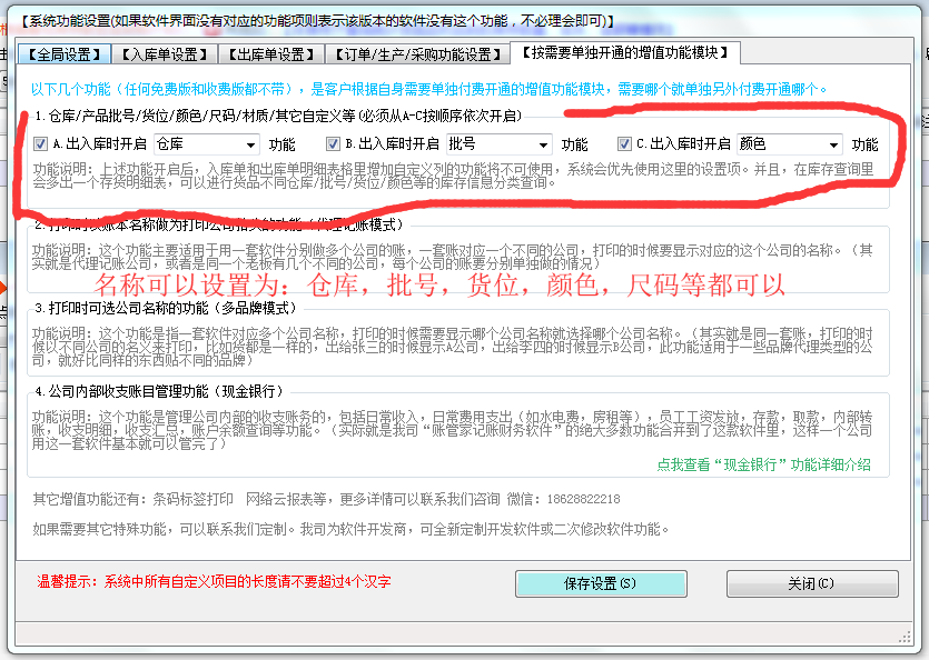 • 增值功能介紹(多倉(cāng)庫(kù),批號(hào),顏色,尺碼等)