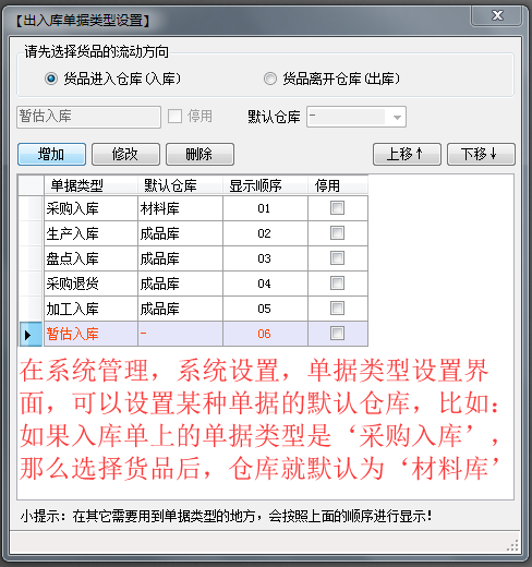 (設(shè)置單據(jù)對(duì)應(yīng)的默認(rèn)倉(cāng)庫(kù))