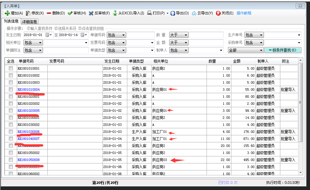 從EXCEL一次性批量導入多張出入庫單據(批量導入單據)