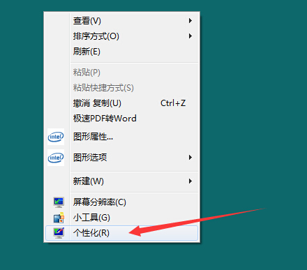 第一步:桌面空白處點鼠標右鍵,然后點【個性化】
