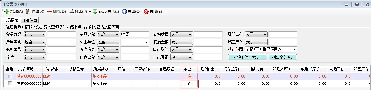 首先,基礎(chǔ)數(shù)據(jù)-貨品管理,這里建立好成品,原材料的貨品信息。比如:以箱為單位,建立一個貨品信息,以瓶為單位,建立好另一個貨品。