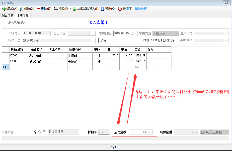 入庫單/出庫單上面的應(yīng)付/應(yīng)收金額和明細(xì)里面的金額不一樣