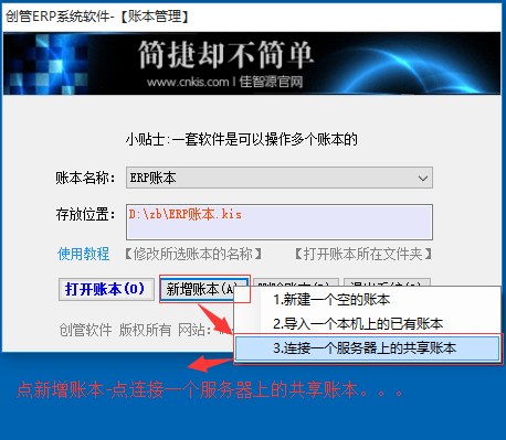 客戶機(jī)電腦上面安裝收費(fèi)版軟件,雙擊桌面圖標(biāo),在出現(xiàn)的第一個(gè)界面點(diǎn)“新增賬本”-“連接一個(gè)服務(wù)器上面的共享賬本”。