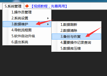 在新電腦上,我們首先還是需要先打開軟件,然后進入【系統(tǒng)管理,數(shù)據(jù)維護,數(shù)據(jù)備份與恢復】