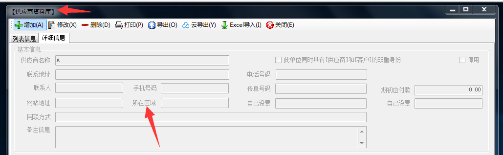 現(xiàn)在,我想需要給供應(yīng)商增加一項(xiàng)【所在區(qū)域】,操作方法如下: